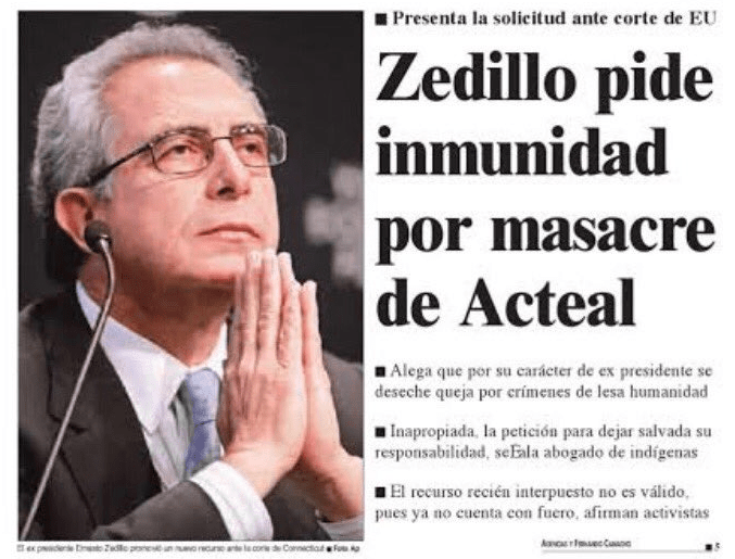 Por ello, recordó hechos registrados en el periodo de 1994-2000, como las masacres de Acteal, de El Charco, El Bosque y de Aguas Blancas.