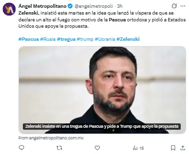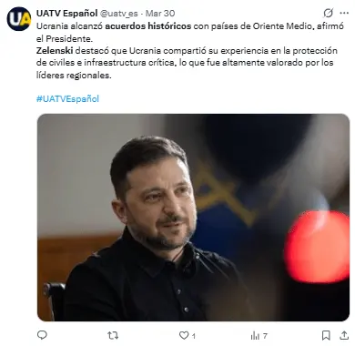Regeneración, 31 de marzo 2026– Este lunes, el presidente Volodimir Zelenski, sugirió una tregua por la Pascua y aseguró que su administración está dispuesta a avanzar en cualquier tratado que termine la guerra, siempre que no se ponga en peligro la dignidad o la autonomía del país. Además, celebró los acuerdos «históricos» alcanzados con países del Golfo.
