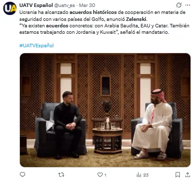 Al mismo tiempo, Zelensky calificó de “históricos” los acuerdos de defensa recientemente firmados con Emiratos Árabes Unidos y Arabia Saudita durante su visita a la región.