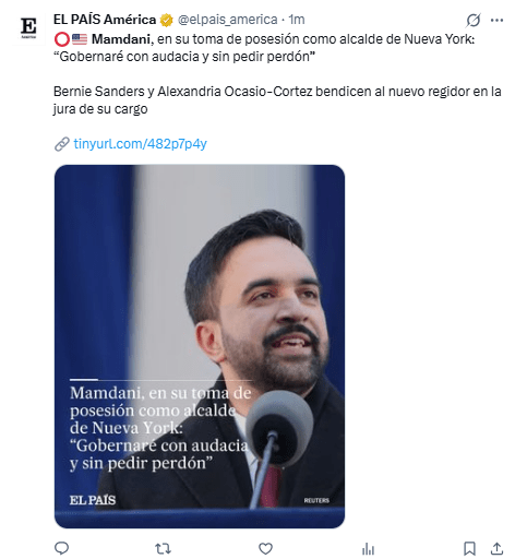 “Es un verdadero honor y un privilegio de toda una vida”, afirmó Mamdani a los medios tras asumir como alcalde de la ciudad más grande de Estados Unidos.